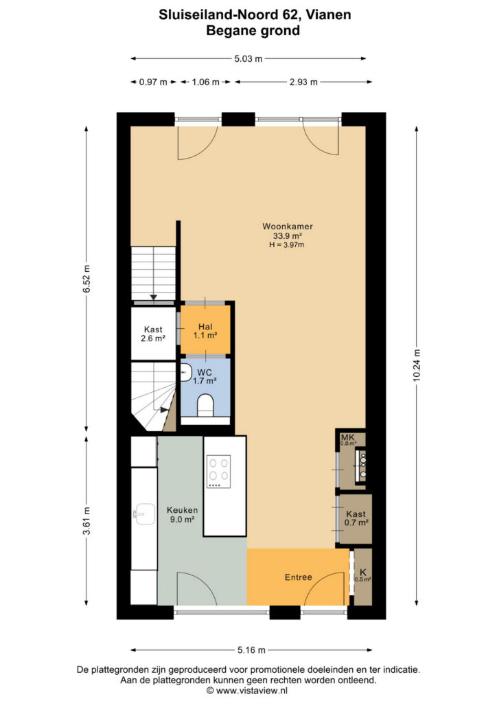 De woning ligt direct aan het Merwedekanaal en biedt een vrij zicht over het water. Binnen enkele minuten wandel je naar de historische binnenstad van Vianen, met winkels, scholen en gezellige terrassen. De wijk is uitstekend bereikbaar via de A2 en A27, waardoor Utrecht en andere steden snel te bereiken zijn. Het autoluwe karakter van Sluiseiland zorgt voor een rustige en veilige woonomgeving voor jong en oud, met volop speel- en ontspanningsmogelijkheden in de buurt.