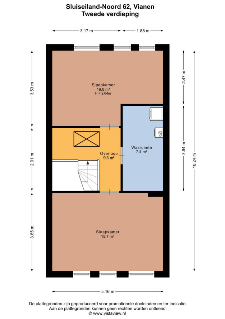 The large L-shaped landing leads to three well-proportioned bedrooms of approx. 16, 10, and 7 m². The main bedroom at the front is bright and spacious with a built-in wardrobe and beautiful views toward the water and Vianen’s historic city center. The two rear bedrooms overlook the canal and greenery, ensuring peace and privacy.