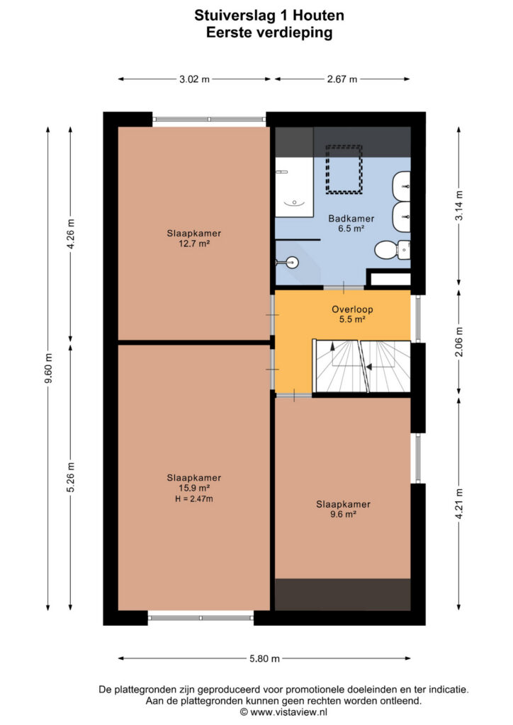 Upstairs, there’s plenty of space for the whole family. The first floor has three comfortable bedrooms, two at the front and one at the rear, along with a spacious bathroom featuring a bathtub, separate shower, double washbasin, and second toilet. This floor is finished with a modern laminate floor.