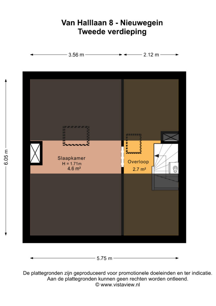Vaste trap naar de verdieping, nu in gebruik als bergzolder. Niet meegerekend in woonoppervlak door plafondhoogte, maar absoluut goed bruikbaar!