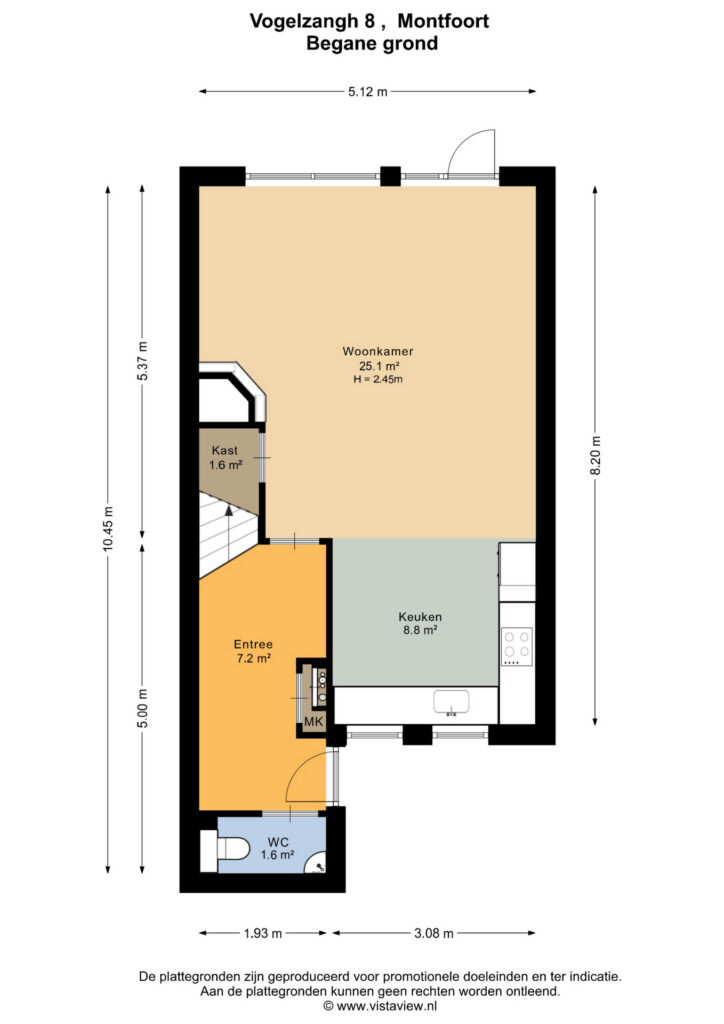 Bij binnenkomst word je verwelkomd in een ruime hal met toiletruimte, meterkast, trapopgang en toegang tot een praktische vliering. De woonkamer is verrassend ruim en licht, met een fijne basis en extra comfort dankzij de aanwezige gashaard en airconditioning.