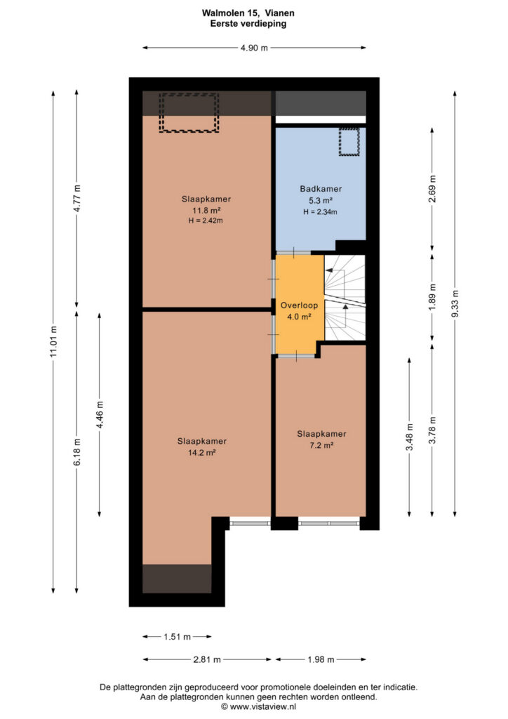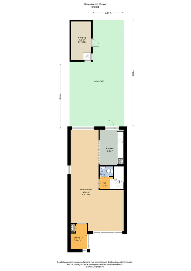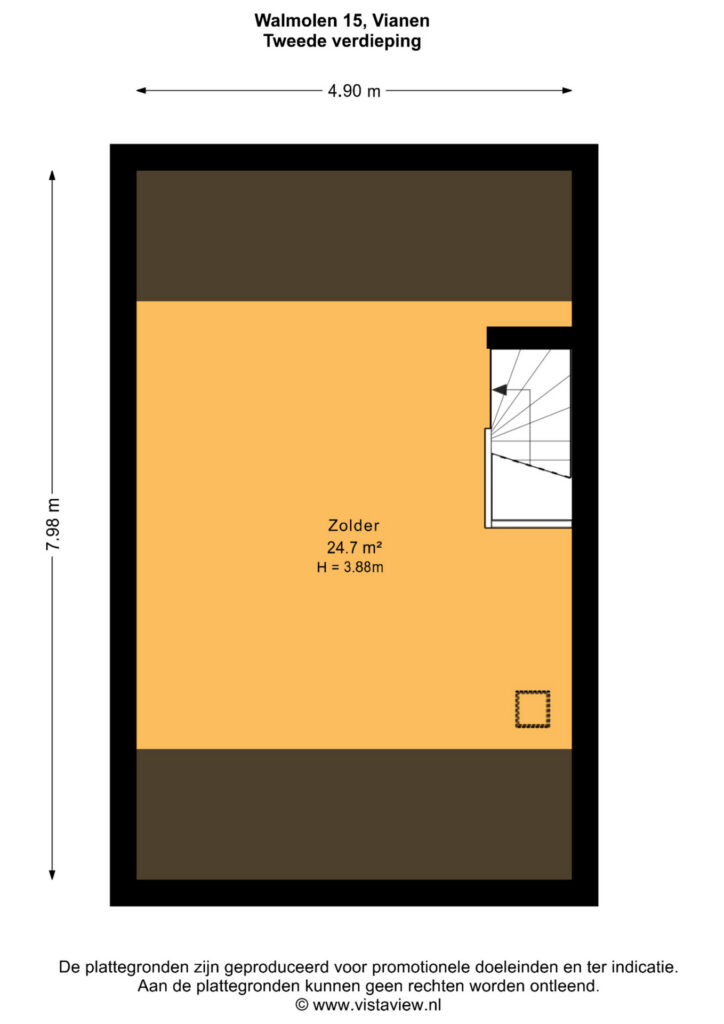 – Let op: de tweede verdieping van circa 25 m² (gemeten vanaf min. 1,5 m stahoogte) voldoet vanwege onvoldoende lichtinval niet volledig aan de NEN2580-eisen voor woonoppervlak, maar is door de vaste trap, royale ruimte en nokhoogte van circa 3,9 m meegenomen in het opgegeven woonoppervlak.