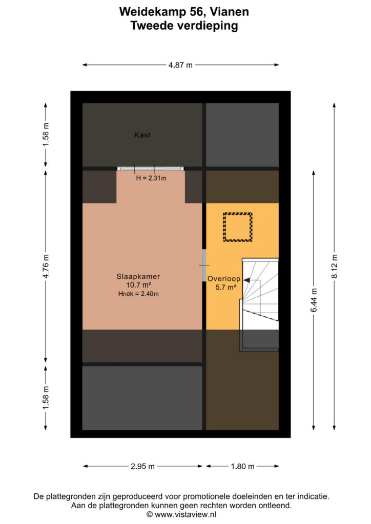 Op de tweede verdieping bevindt zich de overloop met toegang tot de vierde slaapkamer van circa 11 m². Deze kamer is aangenaam licht dankzij de dakkapel aan de achterzijde en biedt volop ruimte als slaapkamer, werkruimte of hobbykamer. Achter de knieschotten in de slaapkamer is extra bergruimte aanwezig.