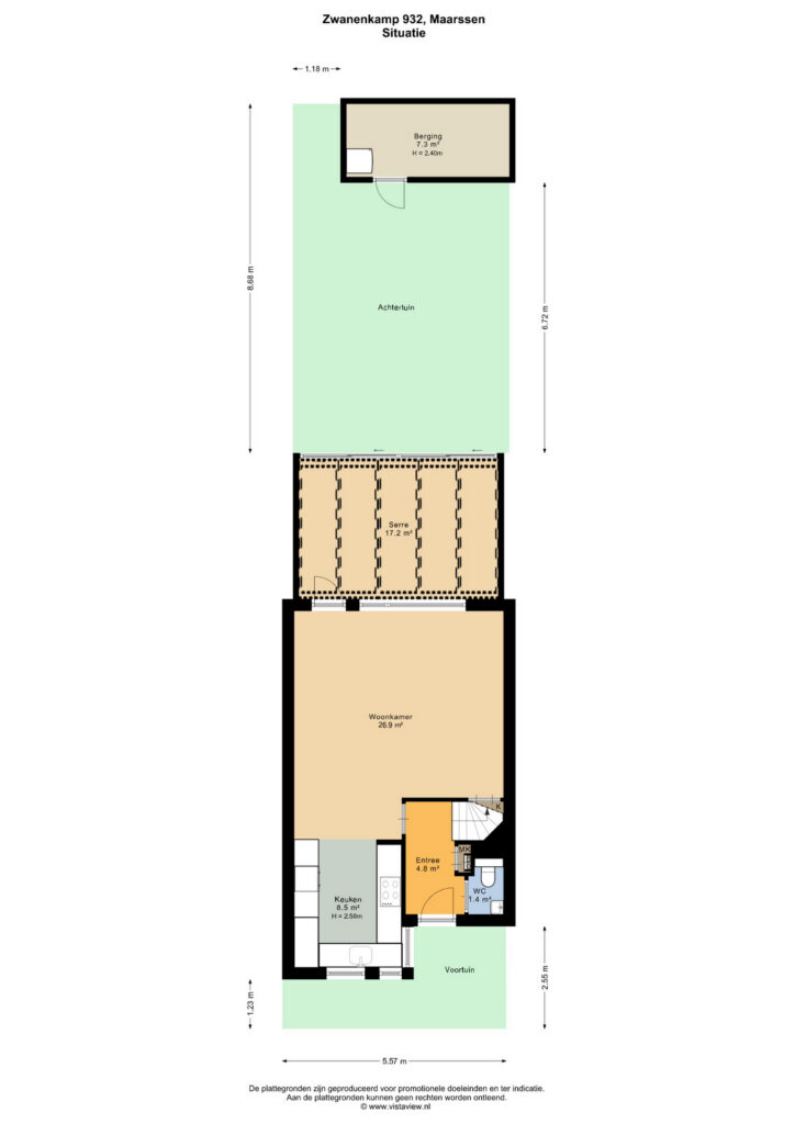 Tuin: via de woonkamer kom je in de heerlijke tuin gelegen op het noordoosten. De tuin ingericht met grote serre, ruim terras, ‘achterom’, een stenen fietsenberging en biedt veel mogelijkheden.